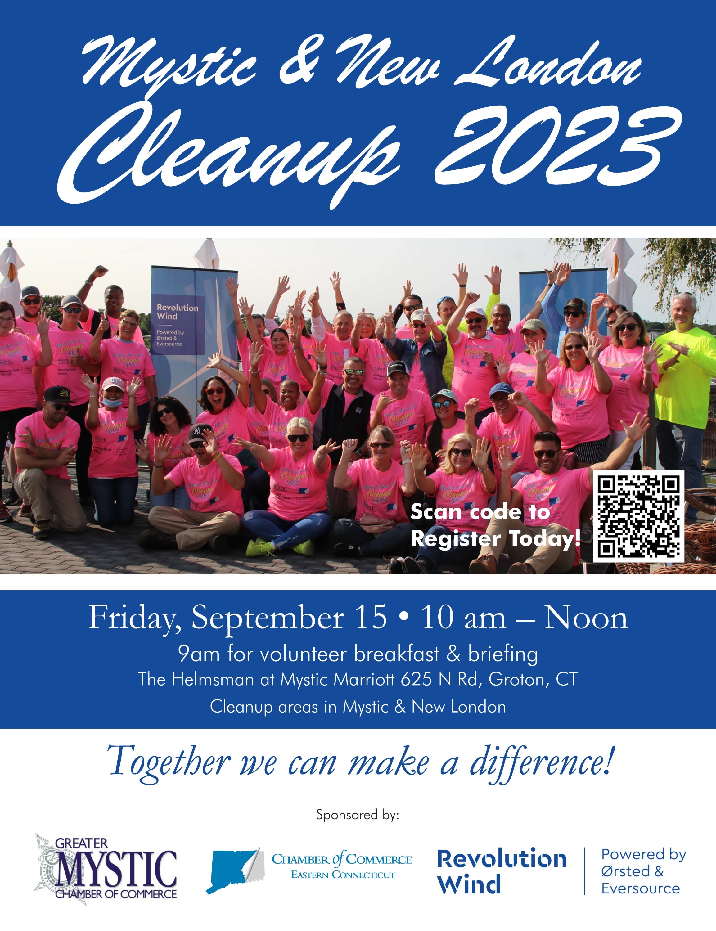 Revolution Wind powered by Orsted & Eversource have partnered with the Greater Mystic Chamber of Commerce and the Chamber of Commerce of Eastern Connecticut for a Mystic & New London Cleanup Day! There will be a breakfast from 9:00am - 9:45am at the Mystic Marriott Helmsman Restaurant and then the clean-up will be from 10:00am - noon.