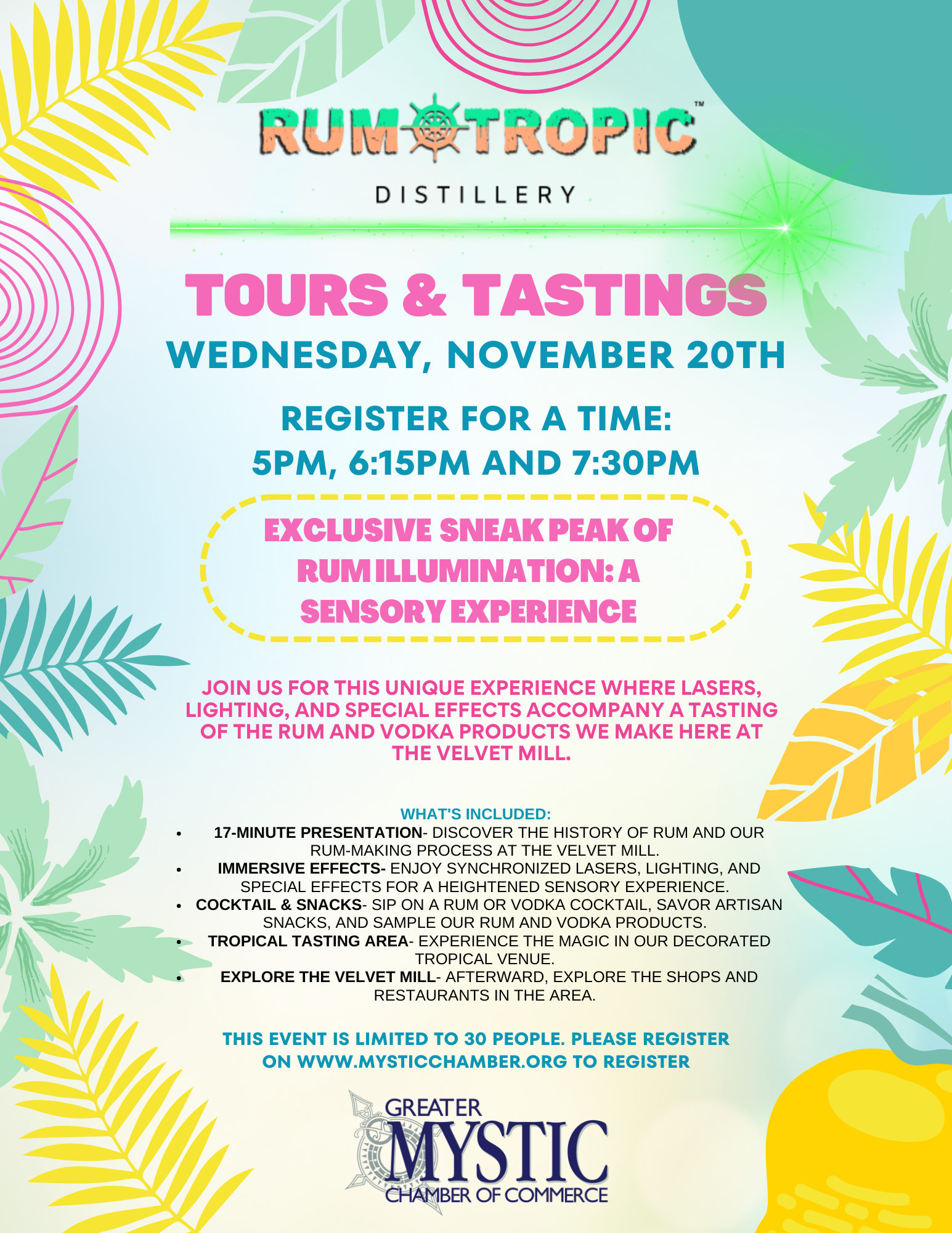 Tours and Tastings with Rum Tropic Distillery and the Greater Mystic Chamber of Commerce