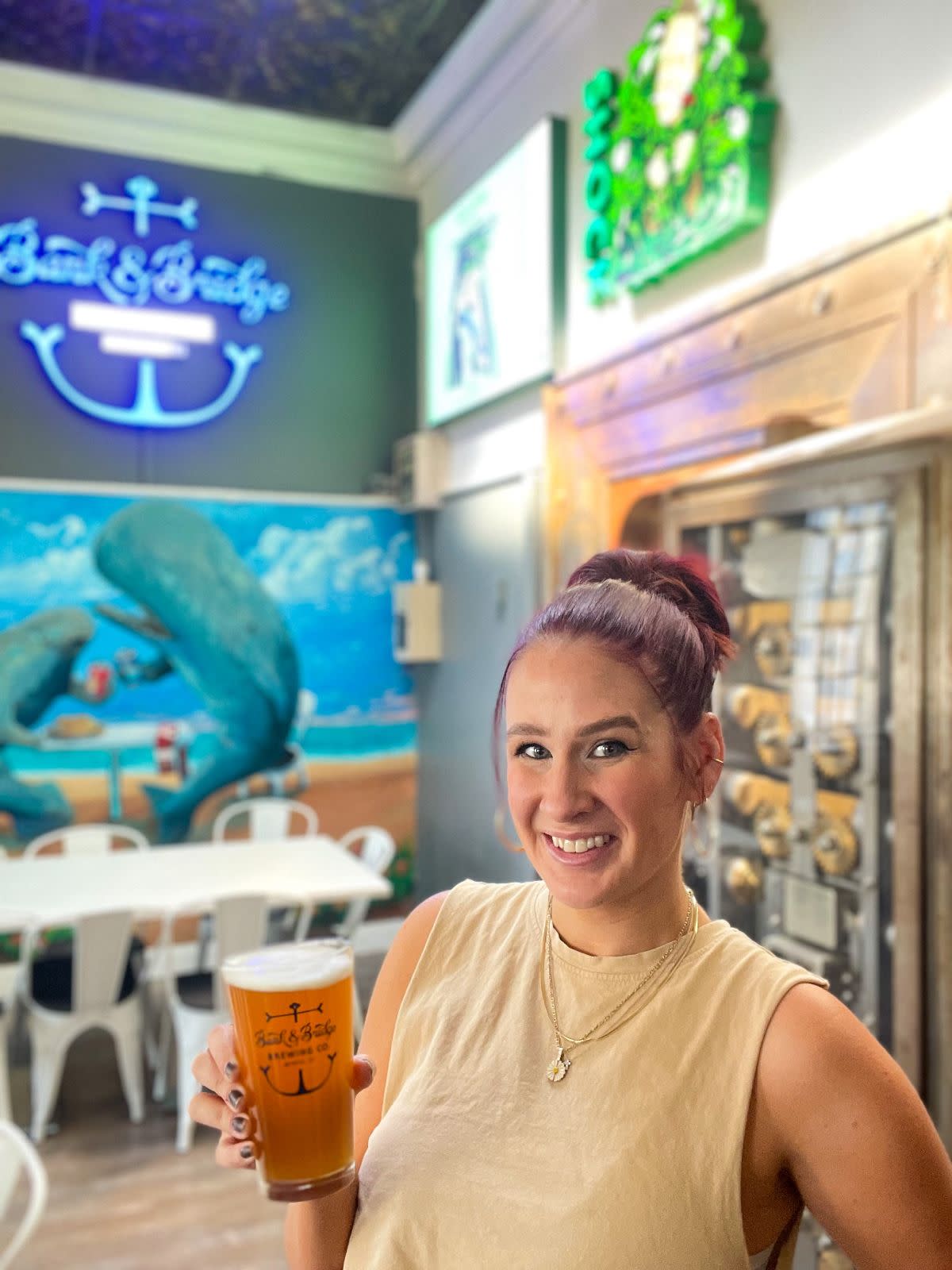 Maggie’s journey into the hospitality industry was inspired by her mother, who also worked in hospitality. From a young age, Maggie was fascinated by the intricacies of setting up weddings, plating food for banquets, and the creativity involved in the process. Today, she is a dynamic force in the industry, wearing many hats at work, from painting the historic columns at Bank & Bridge to designing new merchandise and managing a large staff. Her versatility and passion make her the true definition of a renaissance woman.