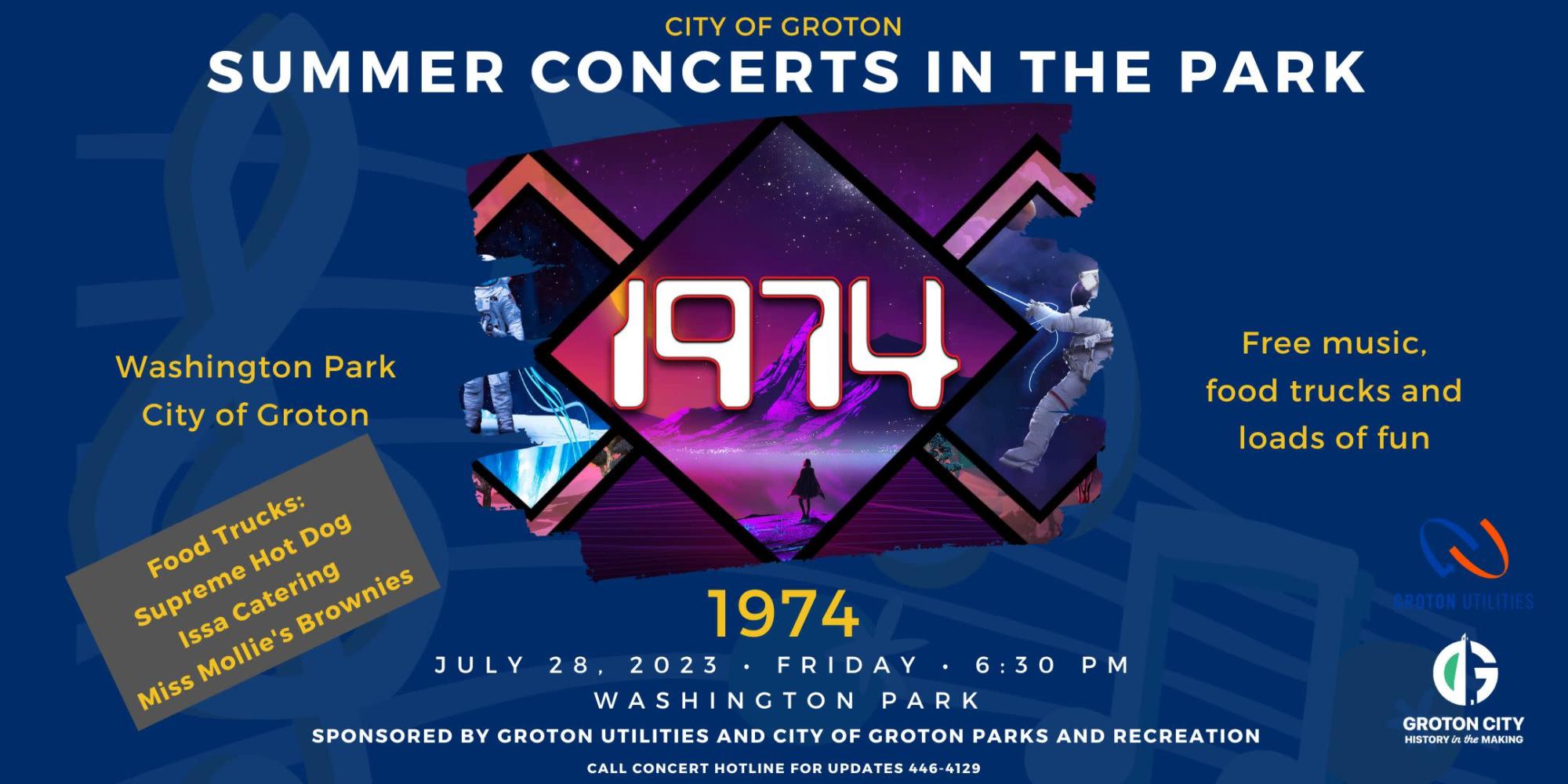 The Friday Night summer concert series takes place at Washington Park, Meridian Street in Groton. All concerts start at 6:30 p.m. and are co-sponsored and co-produced by Groton Utilities and the City of Groton Parks and Recreation Department.