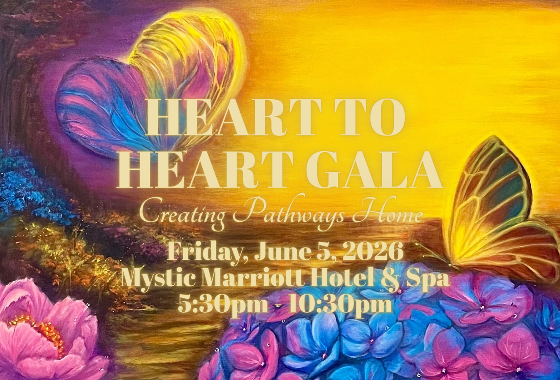 You are invited to Always Home’s Heart to Heart "Garden Soirée" Gala in support of Preventing Family Homelessness on Friday, June 5, 2026. Evening highlights include: Cocktails at the Open Bar; Silent Auction; Three-course Gourmet Dinner; Live Music to Dance to your Heart’s Content; and the Opportunity to Make a Full-hearted Difference in Families’ Lives! ATTIRE: Whatever you choose to wear - Black Tie, Cocktail or Elegant Florals - your heart for our mission is what truly matters.
