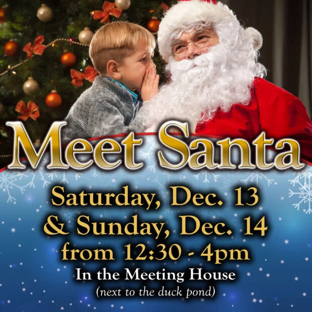 🎄 Santa is coming to Olde Mistick Village! Come by and meet Santa in the Meeting House! 🎄