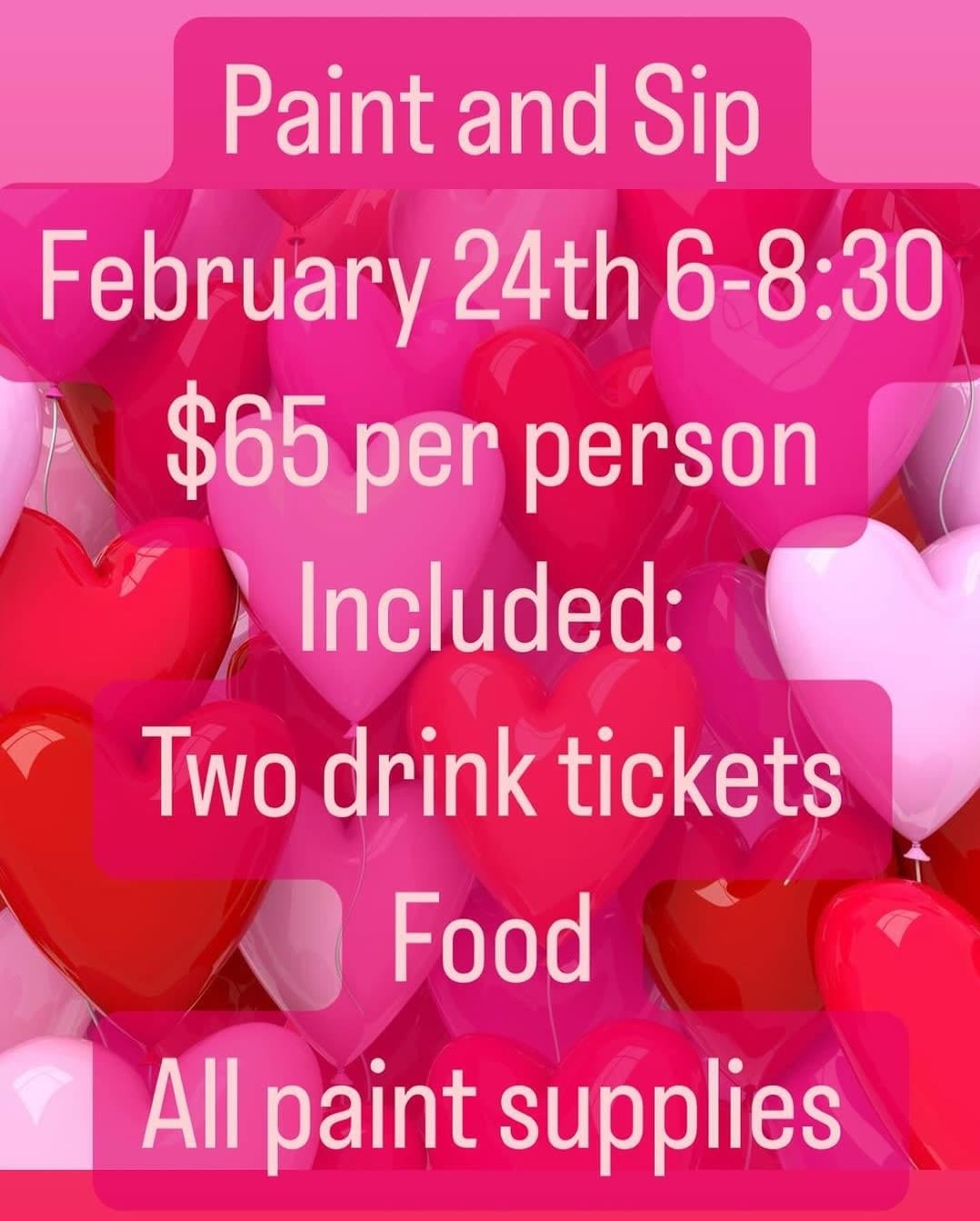 Paint and Sip. Included: Two Drink Tickets, Food, All Paint Supplies.