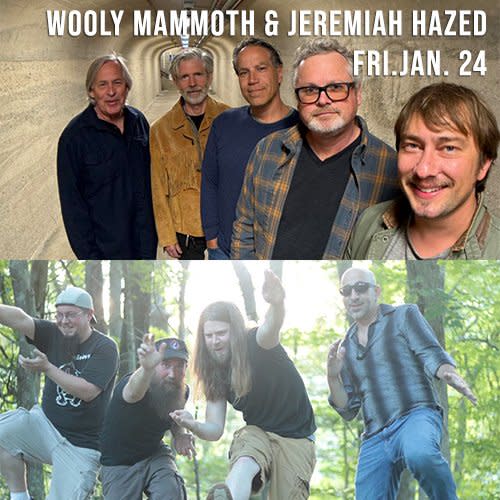 Wooly Mammoth Gray Hallberg is the founder, vocalist, & lead guitarist of Wooly Mammoth, with Jonathan “Sledge” Smith on bass, Toby Halsey on rhythm guitar, Chris Chapman on drums and Scott Parry on keys. In 2020, they released their first album, Evolutionary Rejects. They have graced venues like Captain Daniel Packer Inne, The Barn, Yellow Kittens, The Knick and have played every River Jam.