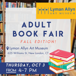 Join us at the Lyman Allyn to celebrate National Book Month! Be sure to stop by the Adult Book Fair in Hendel Library. We will have a selection of books for both adults and children. While you’re here, get creative and stop by the First Thursday artmaking station! All attendees are welcome to make their own bookmark and/or watercolor painting. End your evening with your arms full of books and a soul fueled by art! Cost: Free for Museum members and teachers* / $5 non-members (Includes Museum admission and project materials) *Teachers must show their work ID to receive free admission