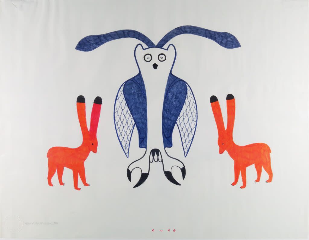 Inuit Art from the James Houston Collection presents the work of indigenous Canadian artists of the 1950s – 1970s, a transformative time in the development of Inuit artmaking traditions. Through dozens of prints, drawings and carvings, the exhibition celebrates the creative richness of these northern artists, acclaimed by major museums worldwide. Depicting traditional Inuit ways at a time of rapid cultural change, the artworks represented not only the main form of economic support for Inuit communities, but a flourishing of expression, both individual and communal. With biographical context and personal interviews, the exhibition highlights the artistry, resilience and cultural perspectives of the artists’ lives. Drawn from the collection of late Stonington resident James Houston, a life-long champion of Inuit art, the exhibition celebrates the skill, imagination and vital humanity of artworks that continue to captivate viewers around the world.