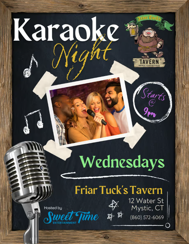 Join us every Wednesday evening at 9pm for some karaoke fun!! Bring some friends, your vocals, and have some good times!!