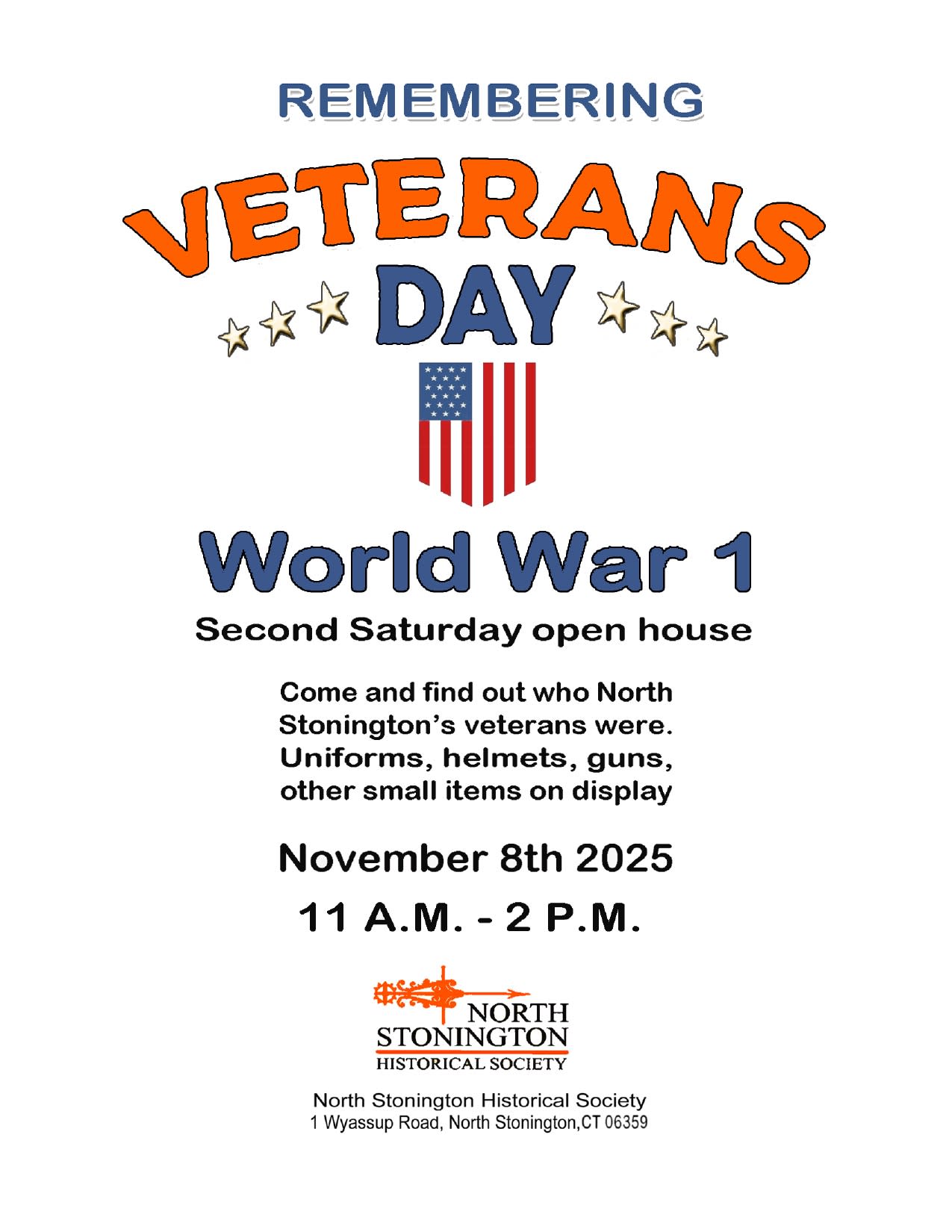 Celebrate Veterans Day weekend at the North Stonington Historical Society at 1 Wyassup Road in North Stonington.