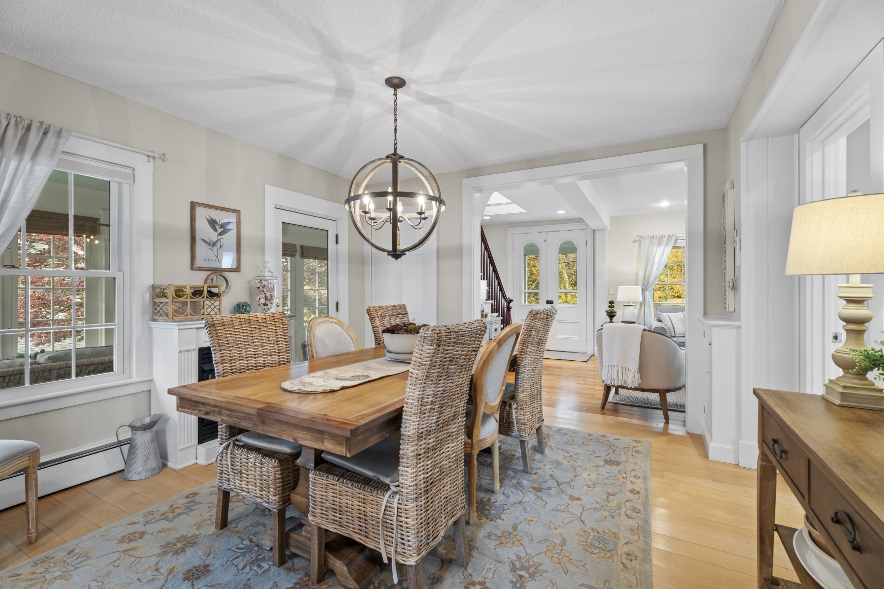 Indulge in a quintessential New England getaway at this beautifully renovated 1876 coastal Farmhouse. Just a few minutes walk from Downtown Mystic and the Seaport, this charming home offers the perfect blend of historic charm and modern comfort.