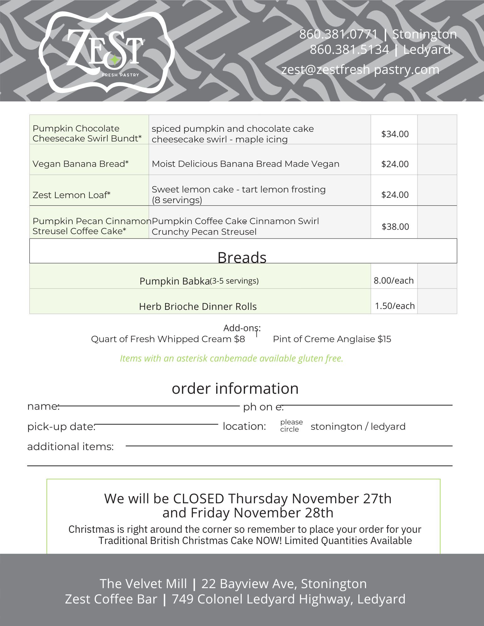 Place Orders by SUNDAY, NOVEMBER 23rd 2025 Pick up will be on WEDNESDAY, NOVEMBER 26th, 8:30am - 2pm